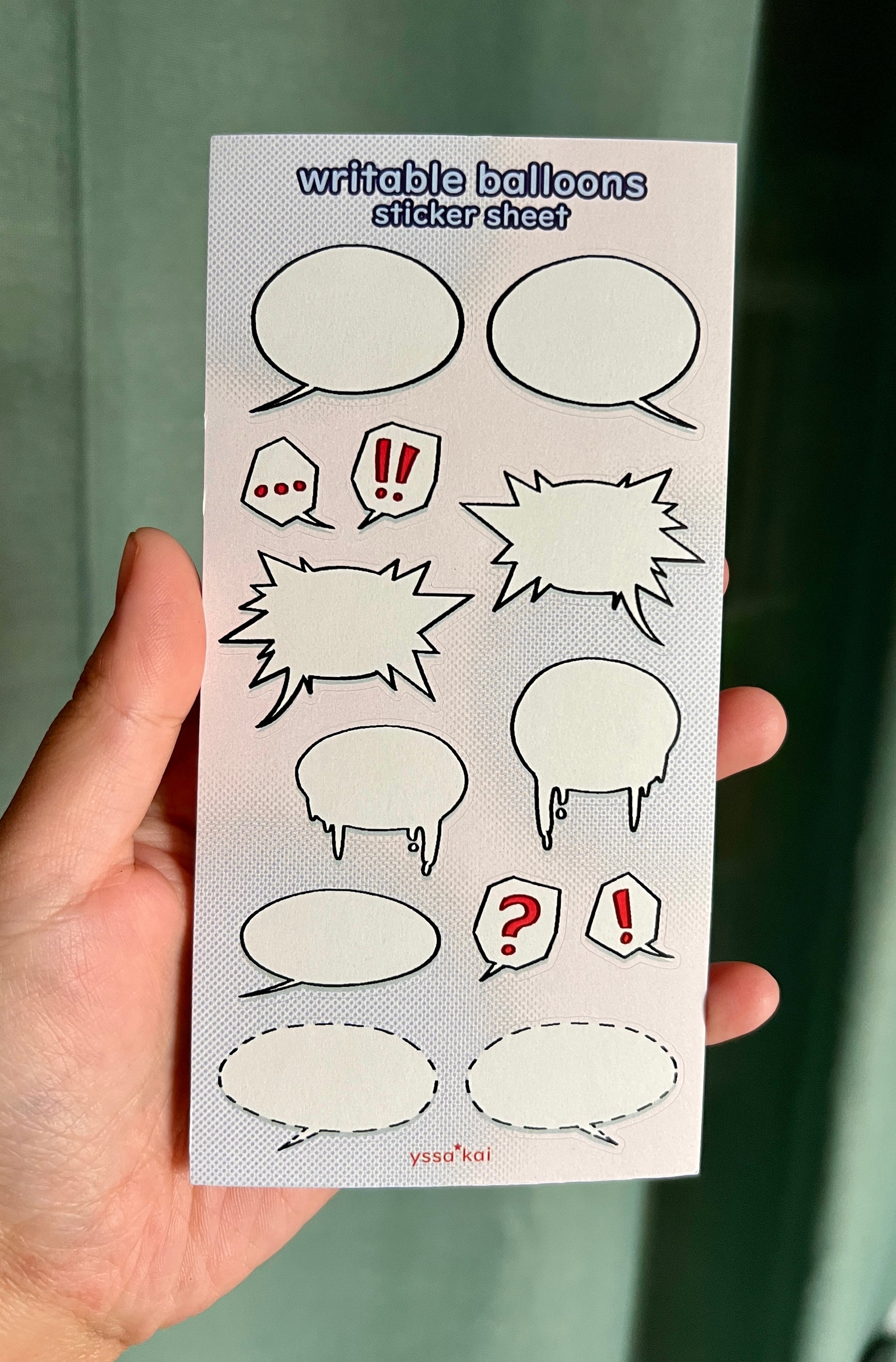 3" x 6" sticker sheet of some comic balloons to write on and decorate your journal/scrapbook/which ever!